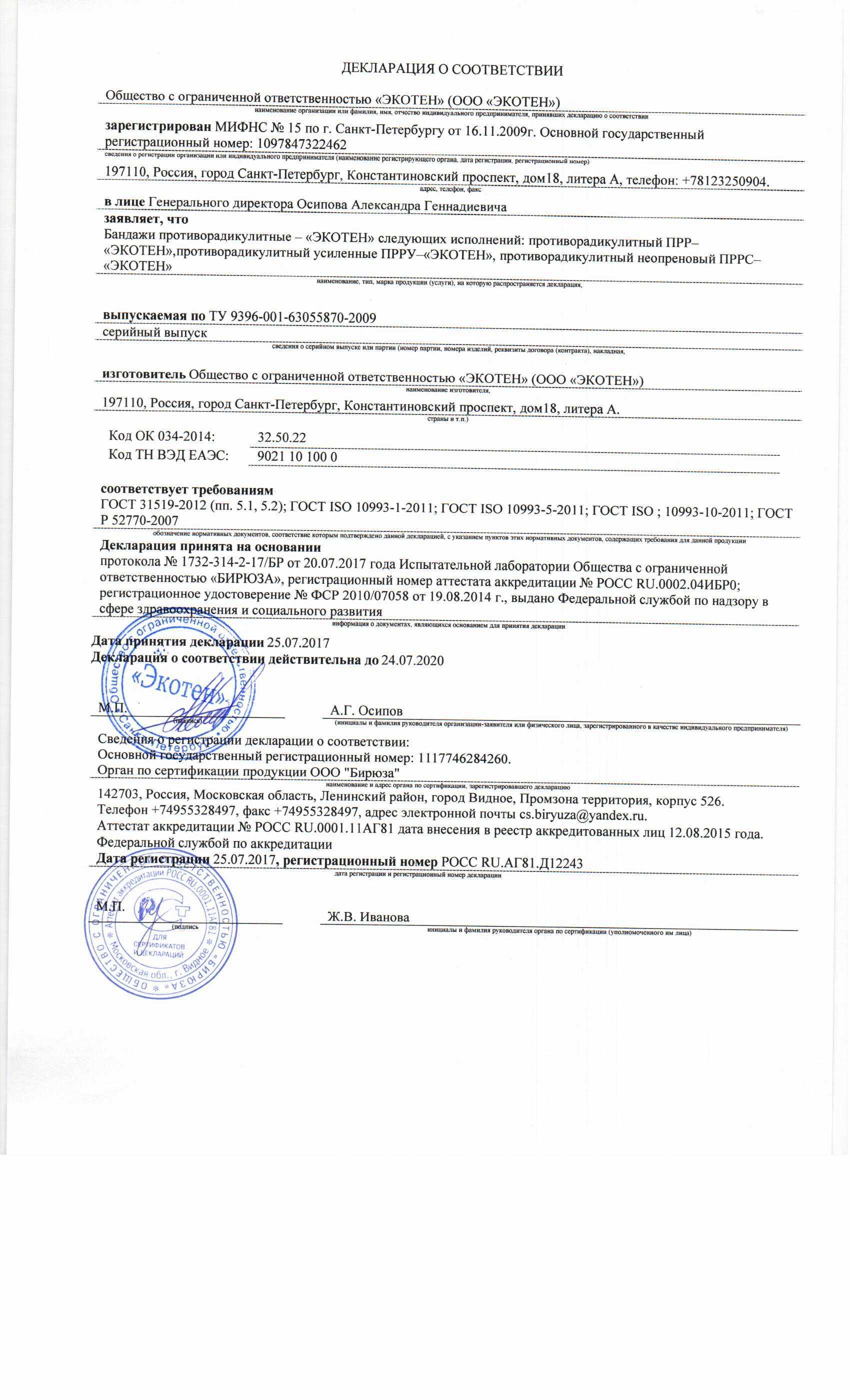 • открытые раны, ожоги кожных покровов в области применения бандажа
