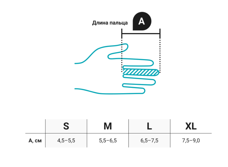 Подбор размера проводится в соответствии с длиной пальца руки.